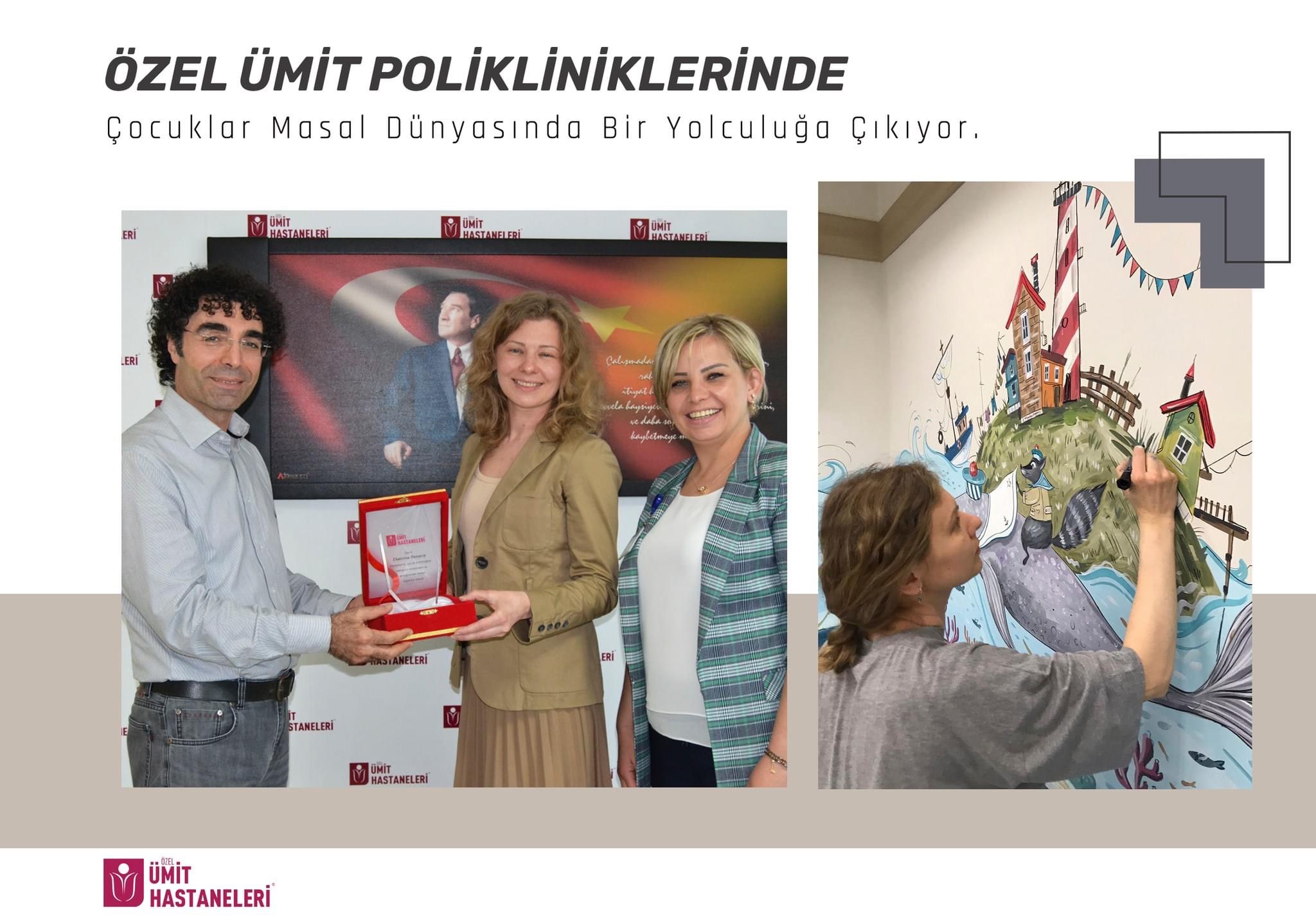 Yaklaşık 7,5 yıl önce Eskişehir’e gelen Rus grafik tasarımcısı, iç mimar ve ressam olan Ekaterina Dunaeva, otizmli çocuğunun eğitim gördüğü okulda farklı bir çalışmaya imza atmış ve yıllar boyunca yaptığı yüzlerce resimle okul koridorlarını sanatla güzelleştirmişti. Ekaterina Dunaeva, bu kez hasta çocuklar için fırçasını eline aldı ve Özel Ümit Hastanesi Çocuk Hastalıkları Bölümü’nün duvarlarını çocuklara moral vermek amacıyla birbirinden güzel resimlerle boyadı.