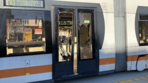 Eskişehir’de sürücüsünün bayrak asmak için açık bıraktığı servisin kapısına çarpan tramvayın içerisindeki 3 yolcu yaralandı.