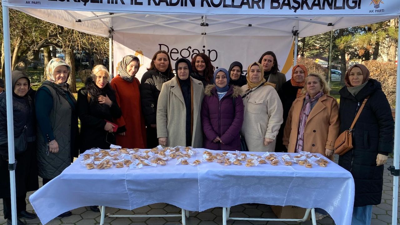 AK Parti Eskişehir Kadın Kolları üyeleri, bugün öğle saatinde Regaip Kandili nedeniyle bir cami önünde kandil simidi dağıttı.