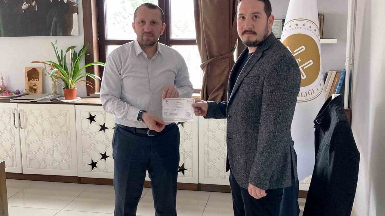 Üçpınar Camii İmam Hatibi Yasin İpek aracılığı ile İlçe Müftülüğüne gönderilen 7 bin TL, ilgili yerlere ulaştırılmak üzere makbuz karşılığı İlçe Müftüsü Hasan Serçe’ye teslim edildi.