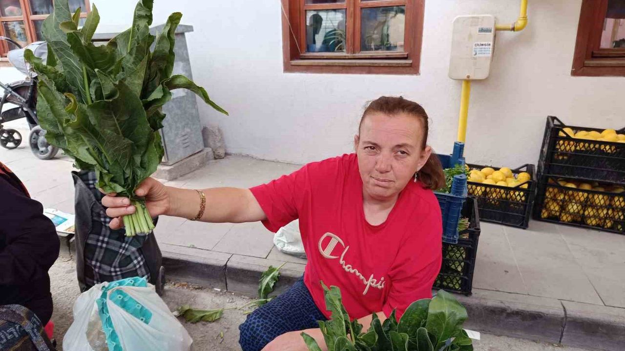 Dere kenarlarında ve sulak çayırlarda topladığı ’Labada’ bitkisini pazarda satıyor