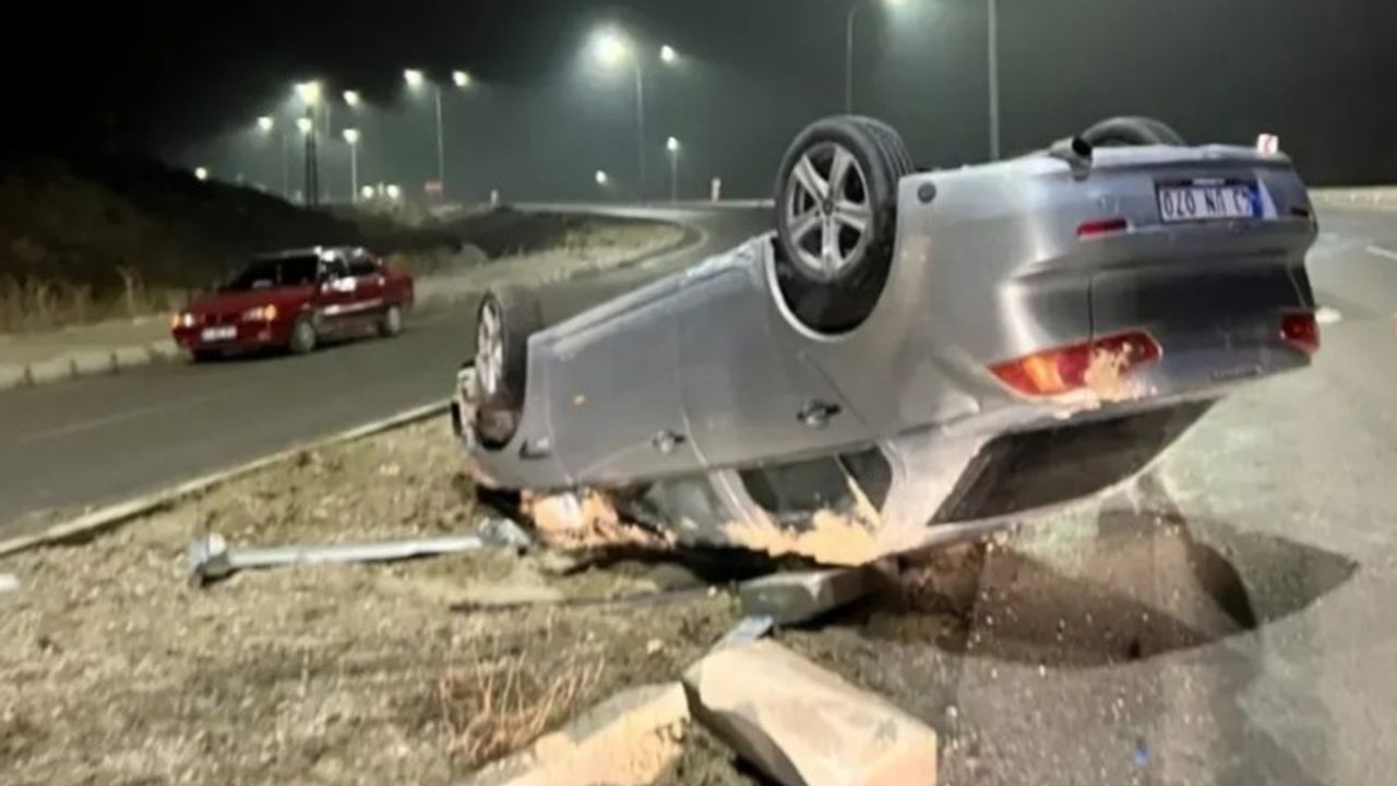 Emet ilçesinde yağış nedeniyle kayganlaşan yolda refüje çarparak ters dönen aracın sürücüsü sürücü hafif yaralandı.