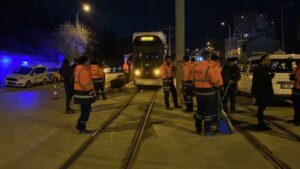 Eskişehir'de bir kamyonun tramvaya çarptığı kaza maddi hasarla atlatıldı. Kaza nedeniyle aksayan seferler ESTRAM ekiplerince yapılan çalışmaların ardından normale döndü.