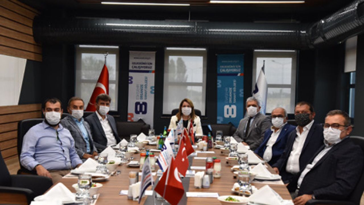AK Parti Eskişehir Milletvekili Prof. Dr. Emine Nur Günay ve AK Parti İl Başkanı Zihni Çalışkan, Eskişehir Organize Sanayi Bölgesi Yönetim Kurulu Başkanı Nadir Küpeli’yi ziyaret ettiler. Ziyarette AK Parti İl Başkan Yardımcısı Metin Çekiç, EOSB Yönetim Kurulu Üyeleri Riza Zeydan, Yavuz Ayva, Hamza Tınas, Denetim Kurulu Üyeleri Hikmet Çetin ve Samet Özkaya yer aldı. Gerçekleşen ziyarete ilişkin Başkan Nadir Küpeli; Günay ve Çalışkan’a Eskişehir OSB’nin yürüttüğü çalışmalar, gerçekleştirilen yatırımlar ile pandemi döneminin Eskişehir sanayisi ve OSB’deki sanayi kuruluşlarına olan etkileri konusunda detaylı bilgiler sundu.