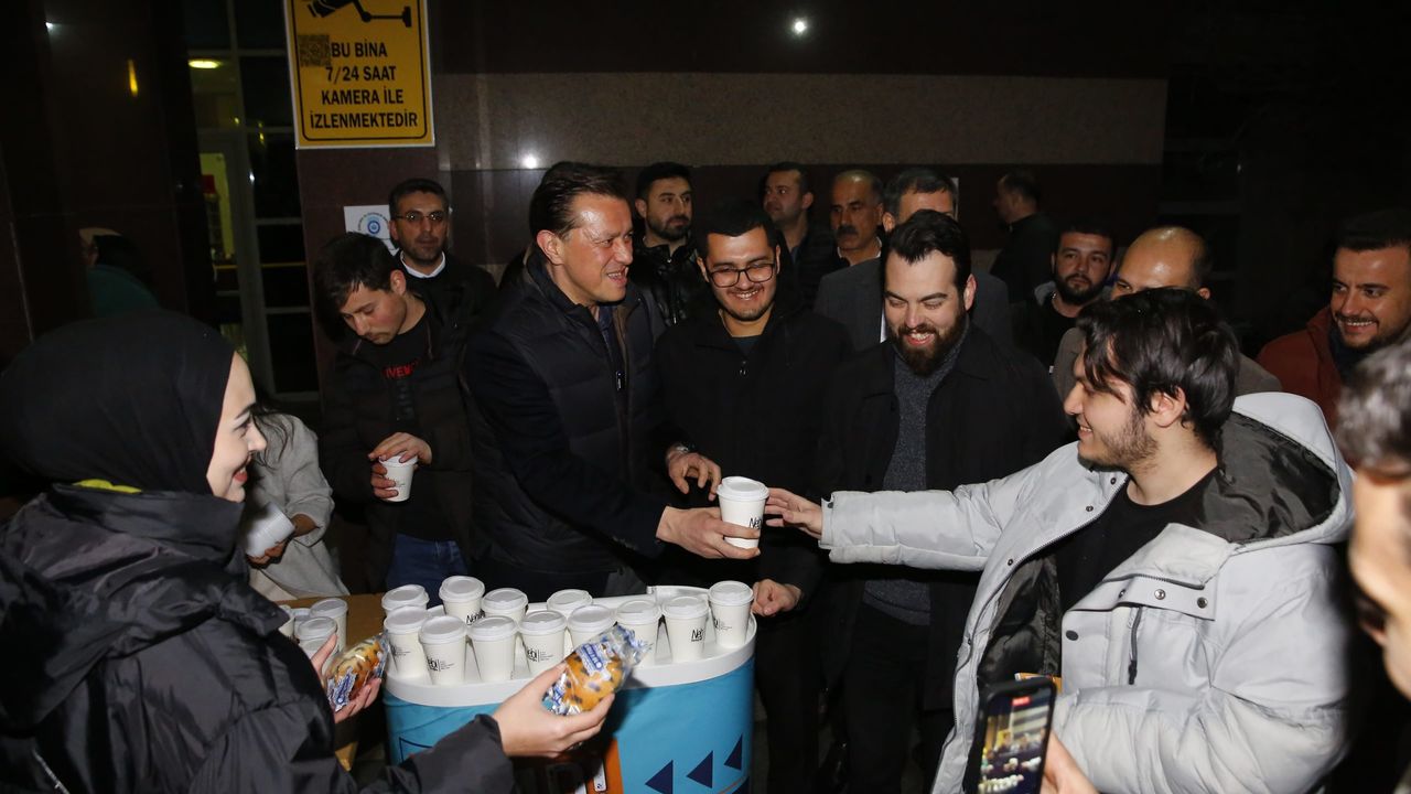AK Parti Eskişehir Büyükşehir Belediye Başkan Adayı Nebi Hatipoğlu, sınavlarına çalışmak için kütüphanede bulunan üniversitelilere sıcak çorba ikramında bulundu.
