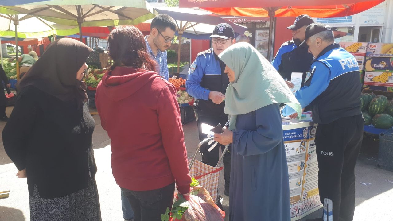Eskişehir’de polis ekipleri tarafından hırsızlık olaylarının önlenmesi amacıyla vatandaşlara bilgilendirme yapılırken, 350 adet broşür dağıtıldı.