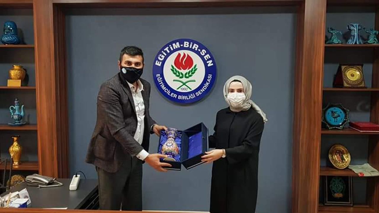 Eğitim-Bir-Sen Eskişehir Şube Başkanı İbrahim Akar, Seyitgazi Kaymakamı Kutsal Baytak’a Eğitim-Bir-Sen Eskişehir Şubesi’nin kadın komisyonu ve sendikanın yürüttüğü çalışmalar hakkında bilgiler verdi.