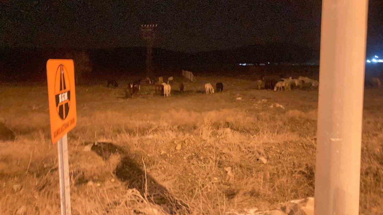 Gece saatlerinde atları fark eden bir vatandaş, bu anları cep telefonu kamerasıyla kaydederken, görüntülerde atların sakin bir şekilde arazide dolaşıp otladığı görülüyor.