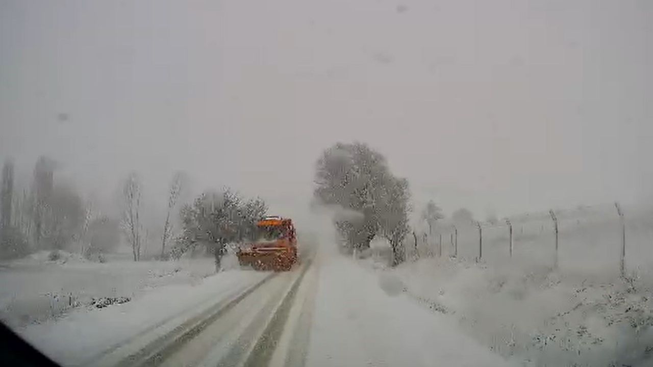 Karayolları Müdürlüğü ekiplerinin karla kapanan yolları açmak için çalışma ve tuzlama çalışması yaptığı öğrenildi.