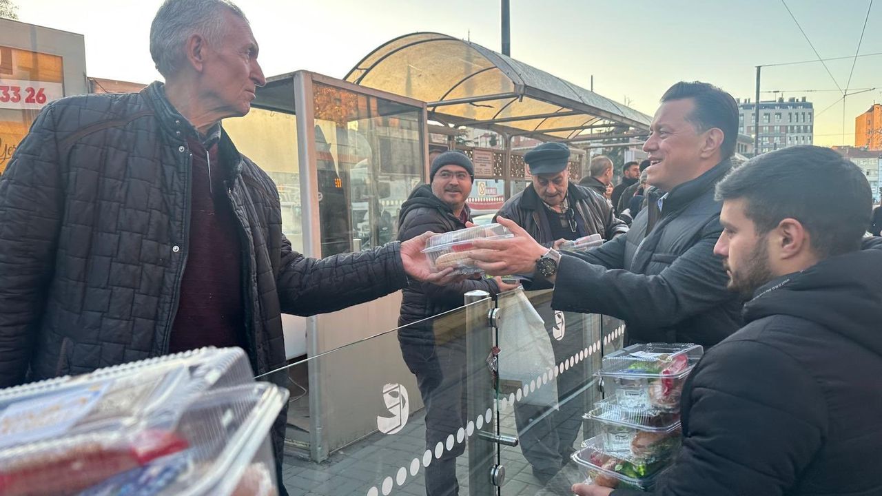 AK Parti Eskişehir Milletvekili Nebi Hatipoğlu, akşam ezanının okunmasına dakikalar kala tramvay durağında bekleyen vatandaşlara iftarlık ikram etti.