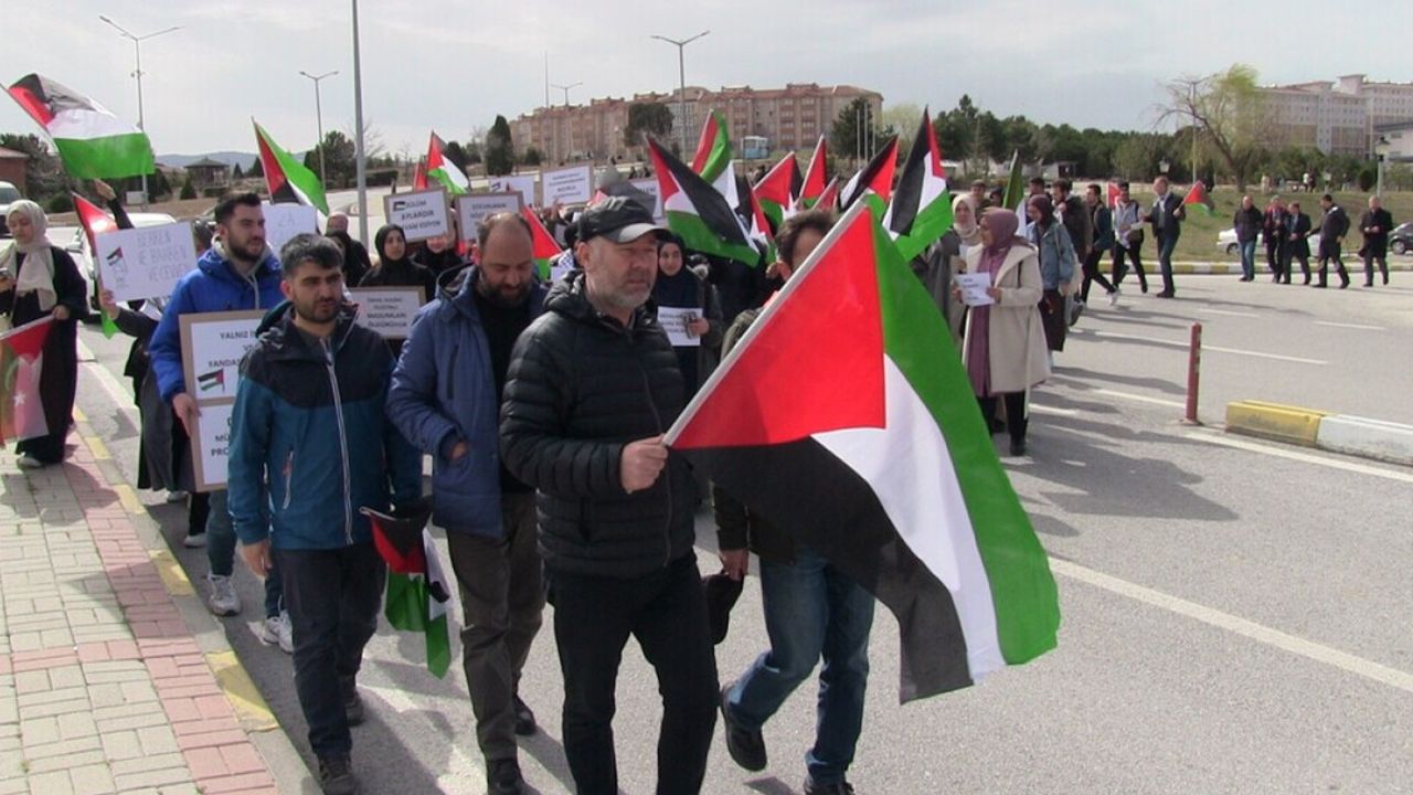 Kütahya Dumlupınar Üniversitesine (DPÜ) bağlı öğrenci toplulukları tarafından ortaklaşa düzenlenen yürüyüşte Filistin’de Ramazan ayında dahi durmayan şiddet ve zulümler sessiz yürüyüşle protesto edildi.