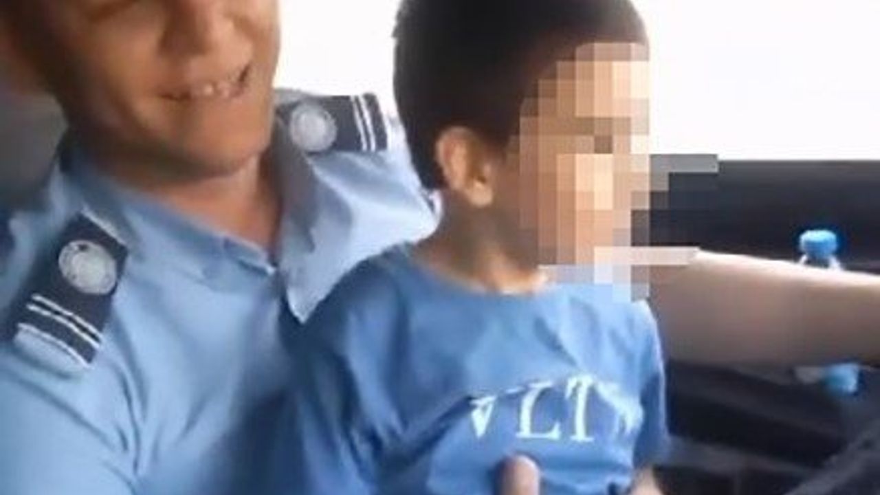 Şoförün kucağında çocuk otururken otobüsün seyir halinde olması, görenleri hayrete düşürdü.