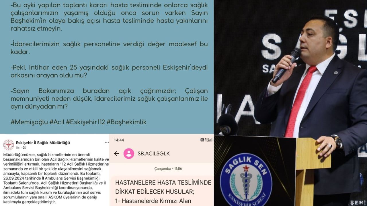 -Bu ayki yapılan toplantı kararı hasta tesliminde onlarca sağlık çalışanlarımızın yaşamış olduğu onca sorun varken Sayın Başhekim’in olaya bakış açısı hasta tesliminde hasta yakınlarını rahatsız etmeyin.