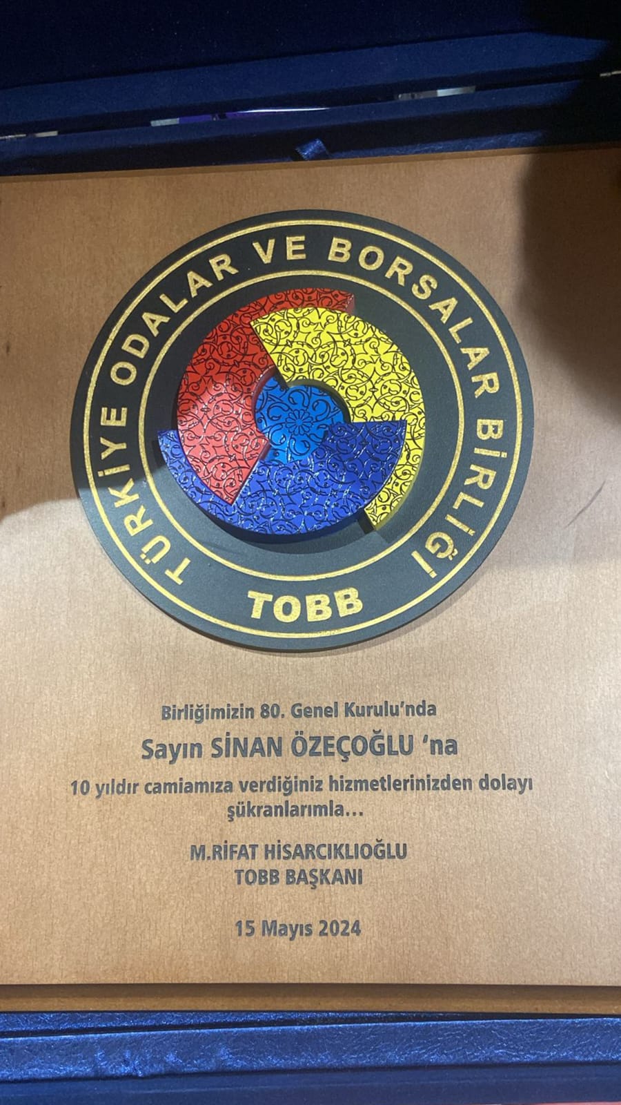 Tören sonrası Sinan Özeçoğlu kutlayan ESO Başkanı Celalettin Kesikbaş, “Sayın Özeçoğlu’na Eskişehir sanayisinin gelişimine verdiği katkılar için teşekkür ederiz. Emekleri çok kıymetli. Bugün de Sayın Cumhurbaşkanımız tarafından kendisine verile bu anlamlı belge yeni başarılarına ilham olacaktır. Hayırlı olsun” dedi.