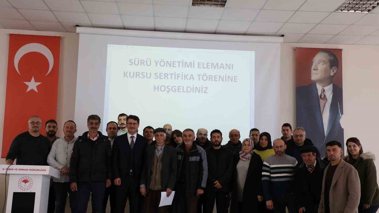 Odunpazarı İlçe Tarım ve Orman Müdürlüğü tarafından düzenlenen Sürü Yönetimi Elemanı Kursu’nun sertifika teslim töreni, Eskişehir İl Tarım ve Orman Müdürlüğü Sazova Kampüsü’nde bulunan Başak Toplantı Salonu’nda gerçekleştirildi.