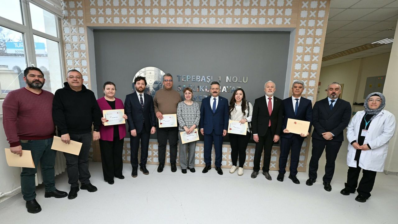 Sigarayı bırakan vatandaşlara belgelerini takdim eden Vali Aksoy, merkezde bulunan poliklinikleri gezerek çalışmalar hakkında bilgi aldı.