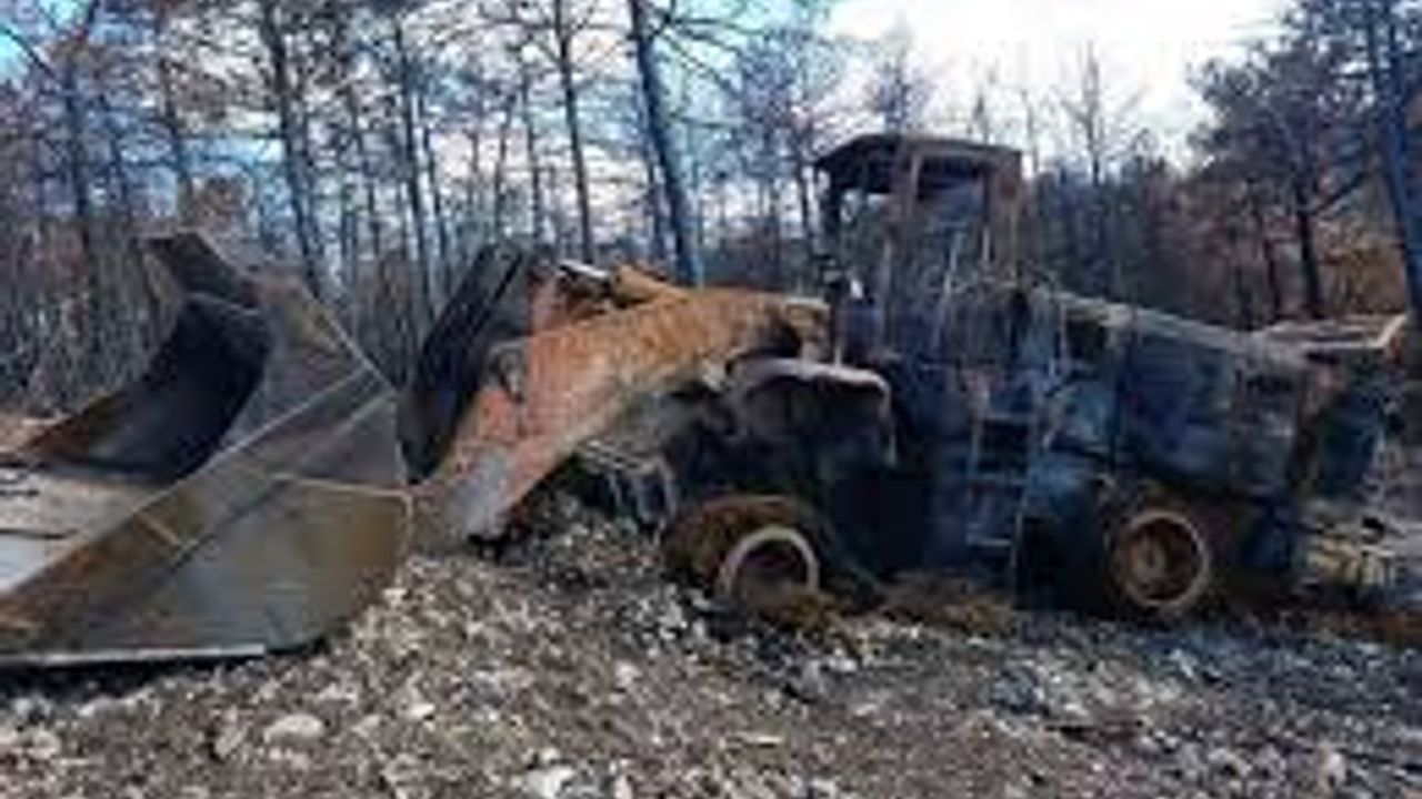 Bahse konu alana yakın bir noktada alevlerin arasında kalarak kül olan özel bir maden işletmesine ait kepçenin enkazı ise ekiplerin çalışmasıyla çıkarıldı. Amatör bir kameraya yansıyan çalışmalarda, küle dönen iş makinasının ekskavatör ve dozerlerle bulunduğu yerden kaldırıldığı görülüyor. Tonlarca ağırlıktaki iş makinasının küle dönmüş hali ise yangının boyutunu bir kez daha gözler önüne seriyor.