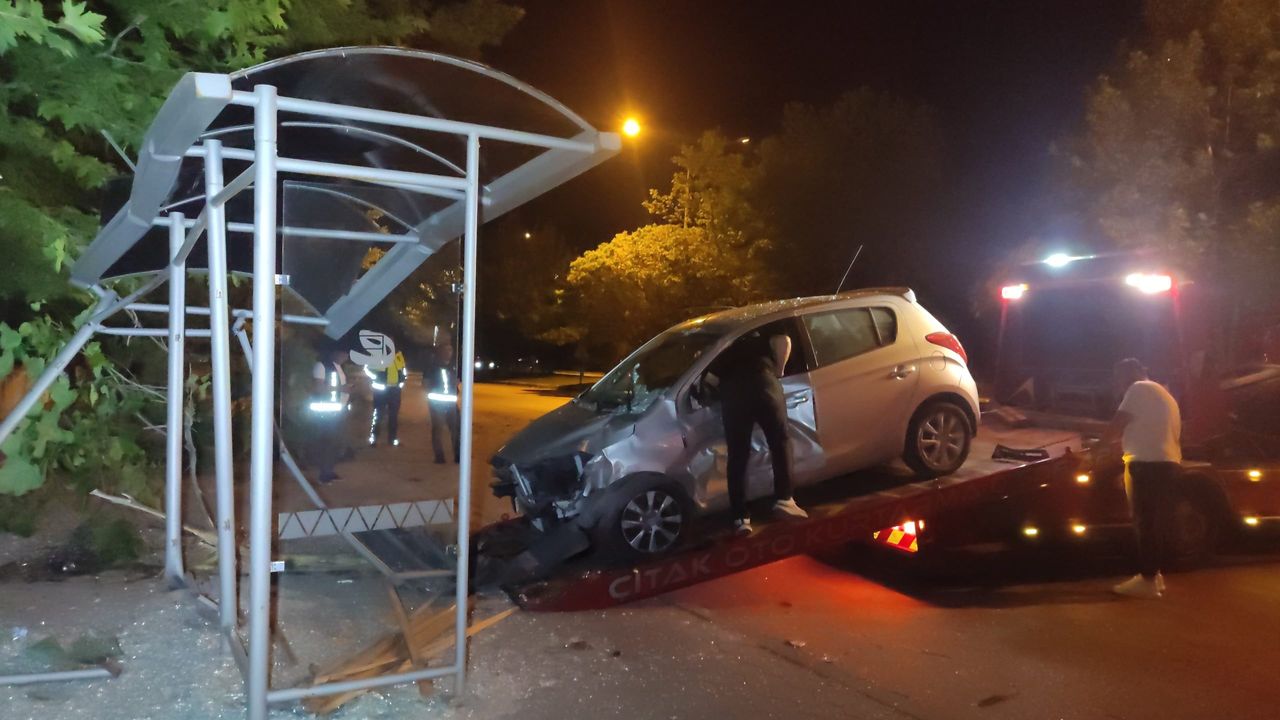 Eskişehir’de 1,42 promil alkollü olduğu belirlenen otomobil sürücüsü, virajı alamayarak otobüs durağına daldı.