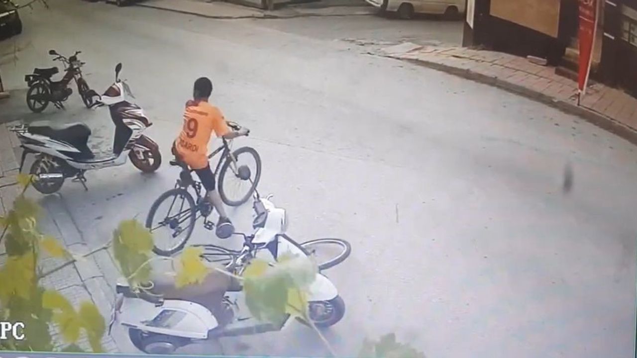 Eskişehir'de bisiklet tamiri yapılan dükkanın önündeki 2 bisiklet yaklaşık 40 saniye içinde çalındı. O anlar güvenlik kamerasına anbean yansıdı.