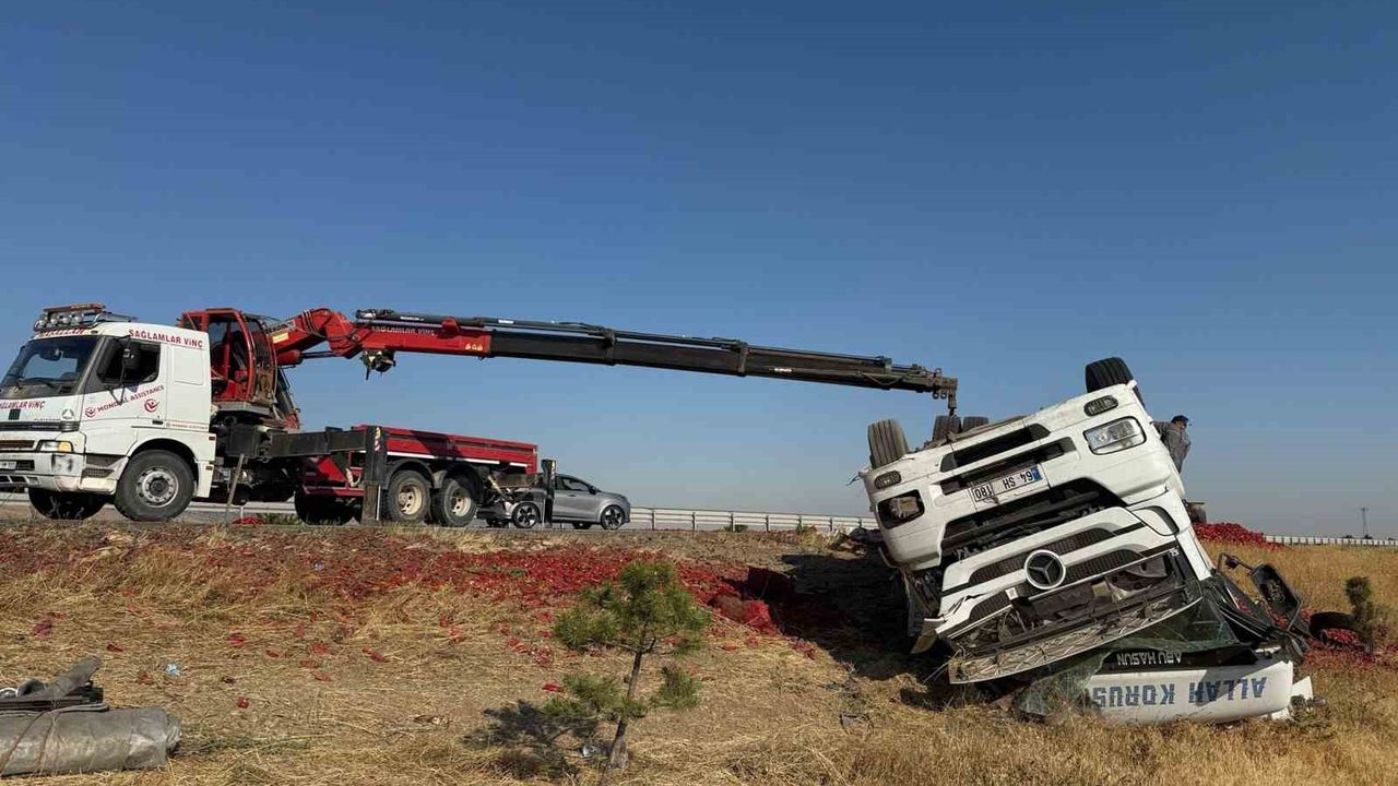 Afyonkarahisar’da şarampole devrilen tırda yaklaşık 20 ton salçalık biber çevreye dağılarak ziyan olurken, olayda sürücü ise yaralandı.