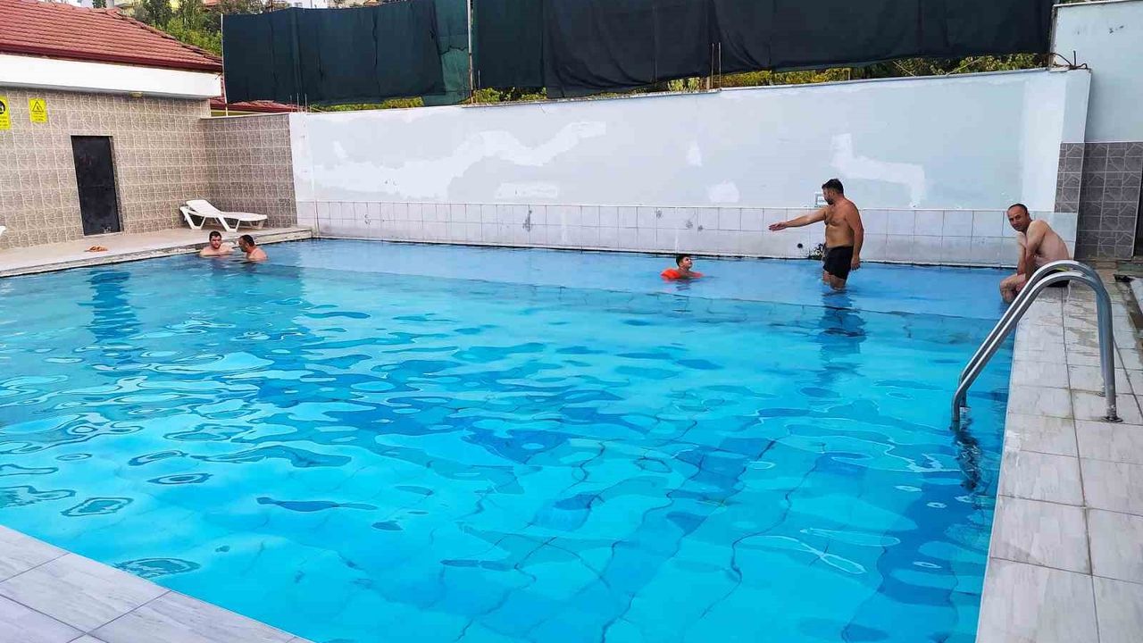 Kütahya’nın Hisarcık ilçesi Sefaköy’deki termal tesislerinde gündüz 35 dereceye ulaşan hava sıcaklığında 41 derece sıcaklıktaki açık havuza giren vatandaşlar hem açık havada yüzme keyfini yaşıyor, hem de şifa buluyorlar.