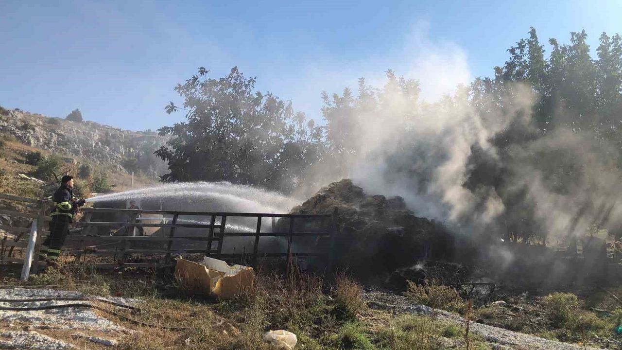 Yangında 350 adet saman balyasının yandığı öğrenildi.