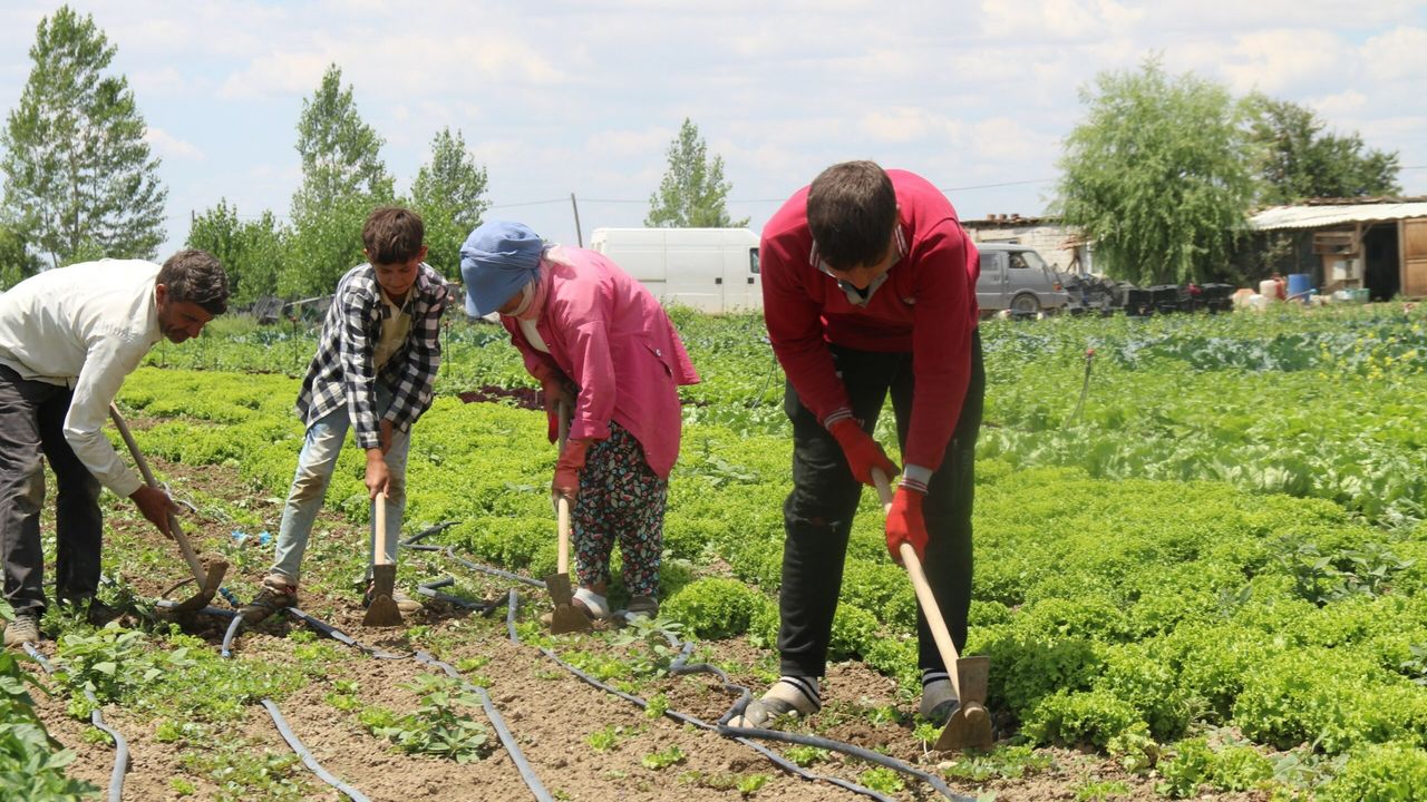 Çalışmak için ailece Şanlıurfa'dan geldiklerini söyleyen ve sıcaktaki zorlu çalışma şartlarından bahseden çiftçi Halil Çelik, "Gördüğünüz gibi marul, yeşillik çeşitlerini çapalıyoruz. Yapacak bir şey yok mecburen çalışacağız. Zor ama emeğimizin karşılığında çalışıyoruz. Baş dönmesi olmasa da güneş baya etkiliyor. Çocuklarda çalışıyor, küçükleri hep peşimizden geliyor. Saat sabah 7'de başlıyoruz, akşam 5'te bırakıyoruz. Marul, brokoli, bahar kesiyoruz. Biberler de yavaş yavaş geliyor, bir hafta sonra o da kesilir. Patronumuz da ara sıra buraya geliyor zaten, Allah razı olsun ondan da" dedi.