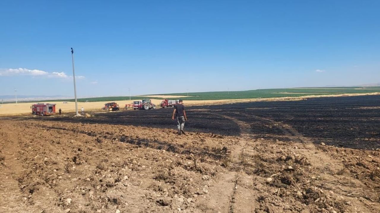 Eskişehir'de buğday hasadı sonrasında 40 dönümlük tarım arazisinde yangın çıktı.