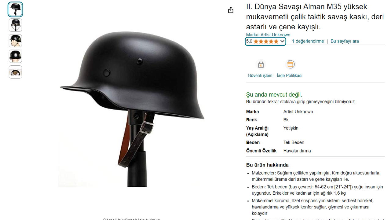 Eskişehir’de hücum yeleği, Nazi kaskı ve gözlük takıp sebepsiz yere 5 vatandaşı bıçakla saldırarak yaralayan şüphelinin yurt dışından sipariş ettiği yüksek mukavemetli 2. Dünya Savaşı Alman M35 çelik taktik savaş kaskıyla ilgili bir forum sitesinde yaptığı yazışmalar ortaya çıktı.