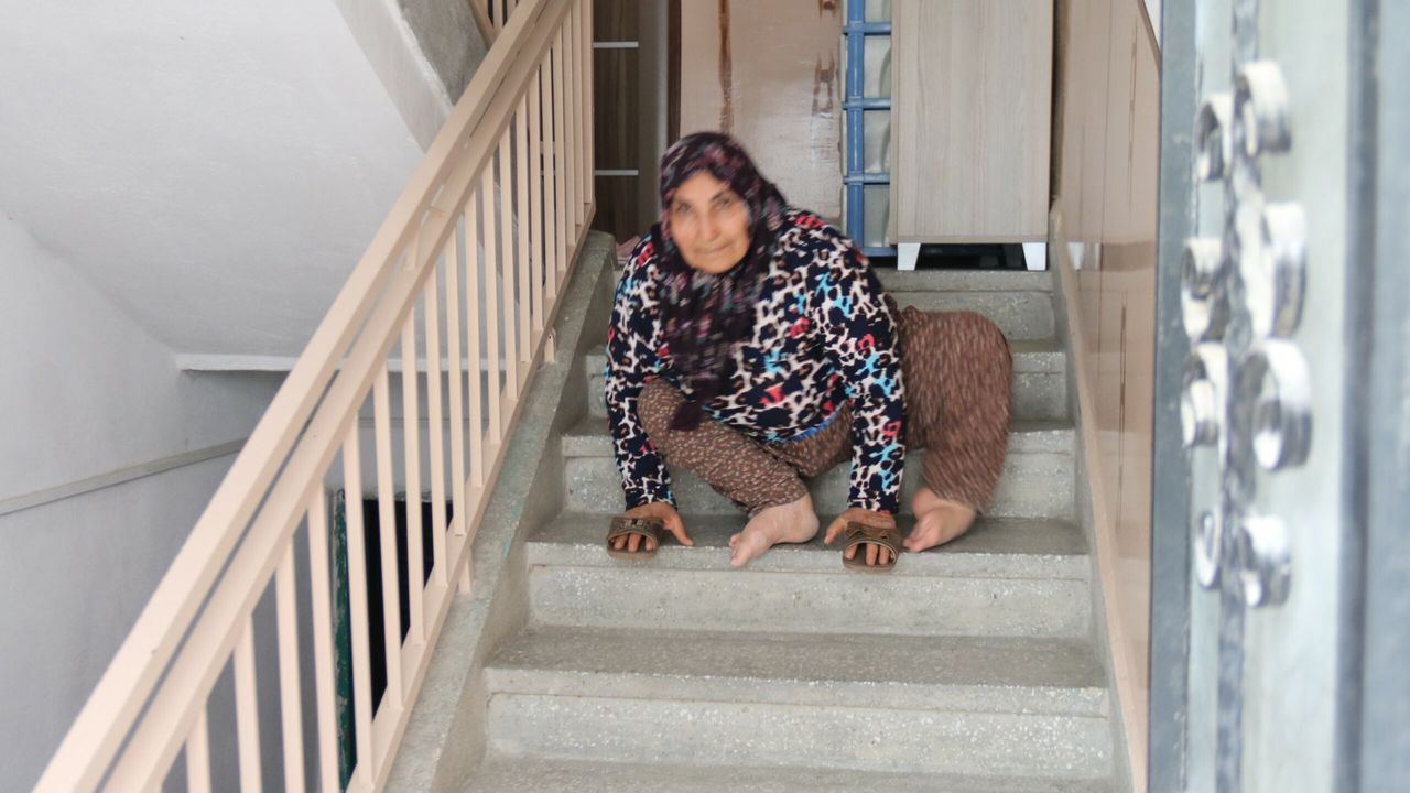 Akülü tekerlekli sandalyesini apartmanın giriş kısmına bırakan yaşlı kadın, çocuk gibi emekleyerek 2'inci kattaki dairesine 20 dakikada çıkabiliyor. Taşlar batmasın diye ellerine terlik giyen Avcı, kışın ise soğuk zeminde oldukça üşüdüğünü belirtti. İkinci kata çıkışını kolaylaştıracak bir engelli asansörü yapılmasını her şeyden çok istediğini belirten, elleri ve ayakları sürünmekten nasır tutan kadın yaşlı kadın, yetkililerden yardım bekliyor.