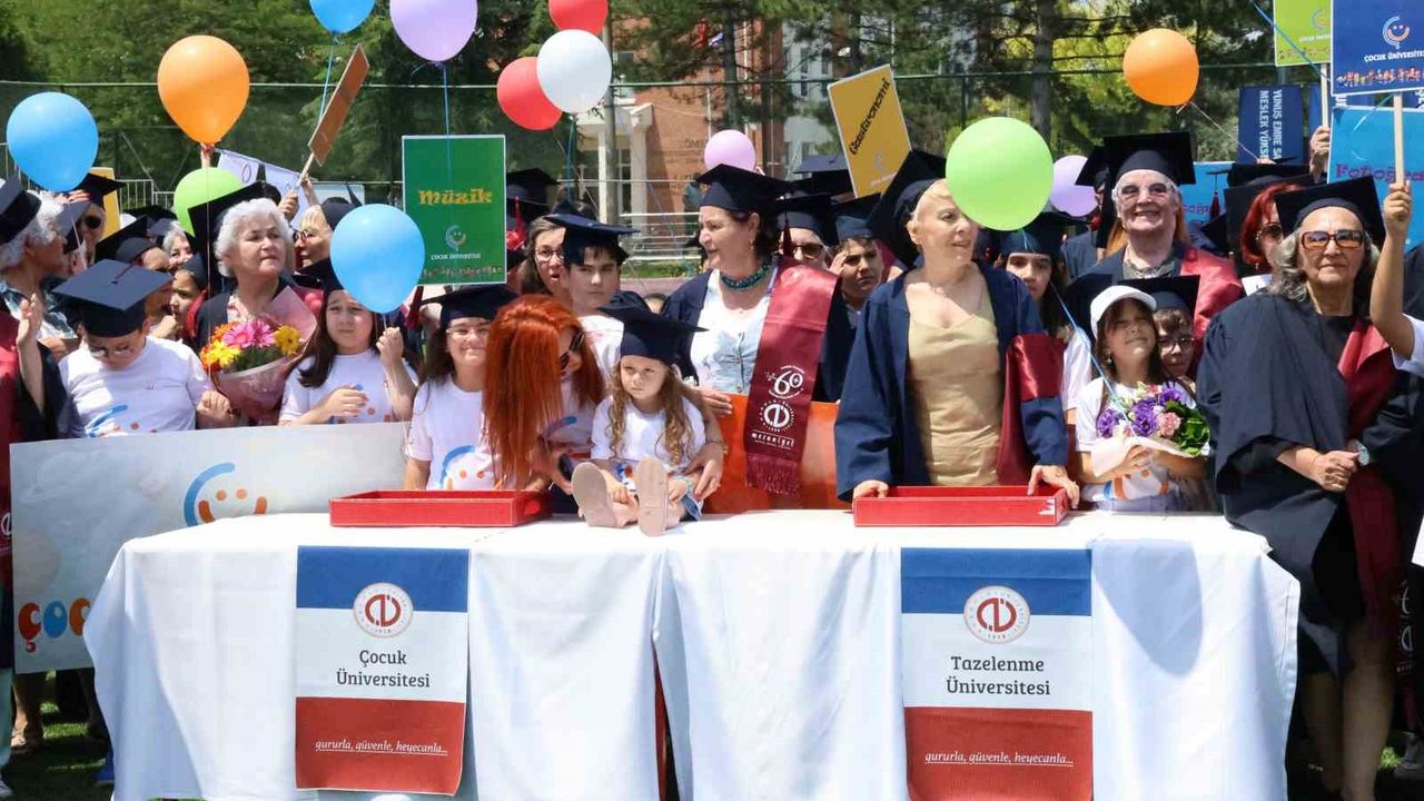 Anadolu Üniversitesi’nde okuyan yüzlerce öğrenci, mezuniyet sevincini yaşayarak kep attı. Çocuk Üniversitesi’nde okuyan küçük yaştaki çocuklar, örgün ve açık öğretimde eğitim gören gençler ile Tazelenme Üniversitesi’nde eğitim gören ileri yaştaki vatandaşlar, hep birlikte mezuniyet sevinci yaşadı. Anadolu Üniversitesi futbol sahasında gerçekleştirilen mezuniyet töreninde 3 kuşaktan farklı yaşlardaki yüzlerce kişinin hep birlikte mezuniyet sevinci yaşaması renkli görüntüler oluşturdu.