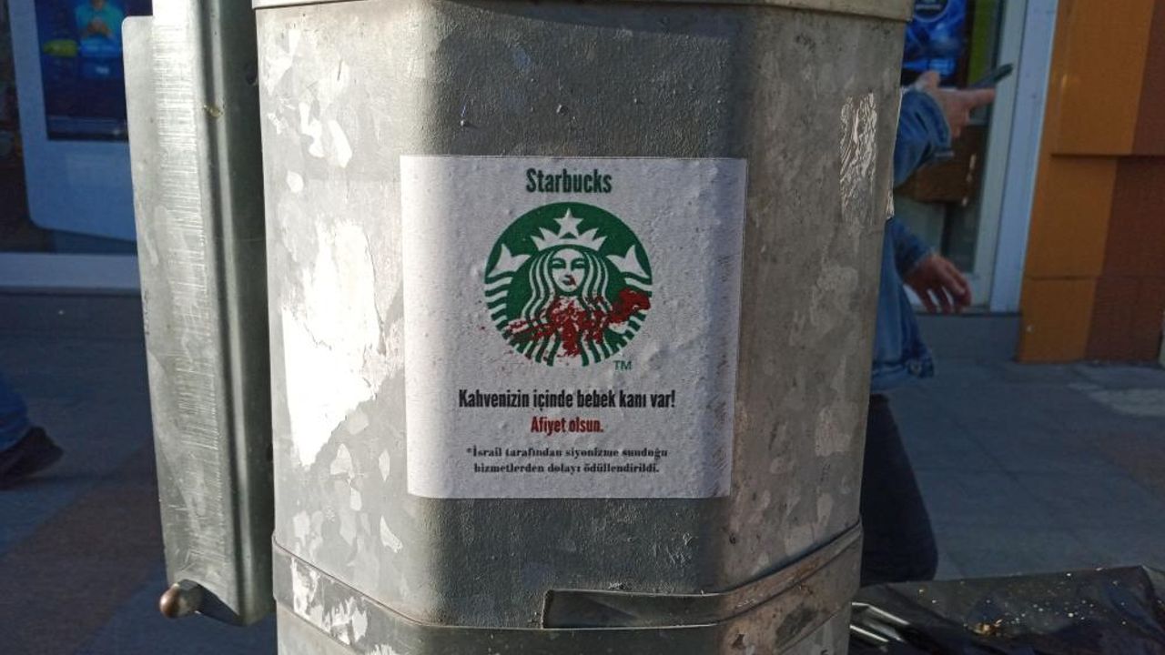 Gazze’ye saldırılar düzenleyen İsrail’e destek verdiği gerekçesiyle ABD'li kahve zinciri Starbucks’ın hedef alındığı bir yazı yapıştırıldı. Yazıda “Kahvenizin içinde bebek kanı var! Afiyet olsun' yazdığı görüldü.