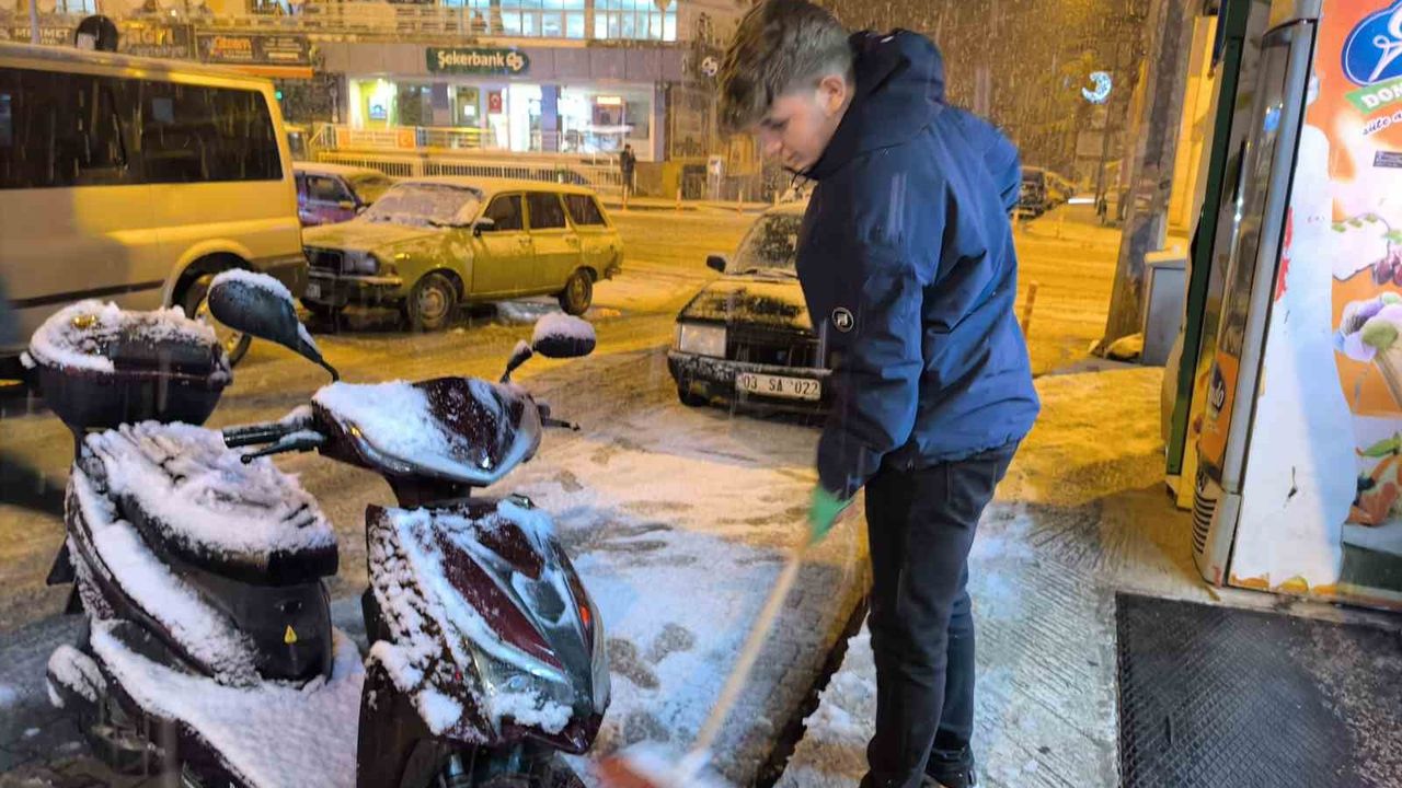 Meteorolojinin uyarıları sonrası Afyonkarahisar’da beklenen kar yağışı akşam saatlerinde başlarken, yağış özellikle yüksek kesimlerde etkili oldu.