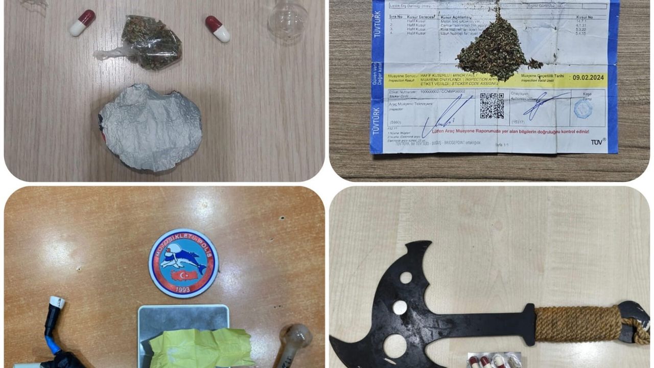 Afyonkarahisar İl Emniyet Müdürlüğüne bağlı ekipler metruk alanlarda şok uygulama yaptı. Bu çerçevede İ.A, A.Ç, Ü.S.D ve S.Ö isimli 4 şüpheli şahısın üzerinden ve araçlarından çeşitli miktarlarda sentetik uyuşturucu maddesi çıkarken, esrar, metanfetamin ve uyuşturucu içmekte kullanılan aparatlar ele geçirildi. Olayla ilgili soruşturma sürüyor.