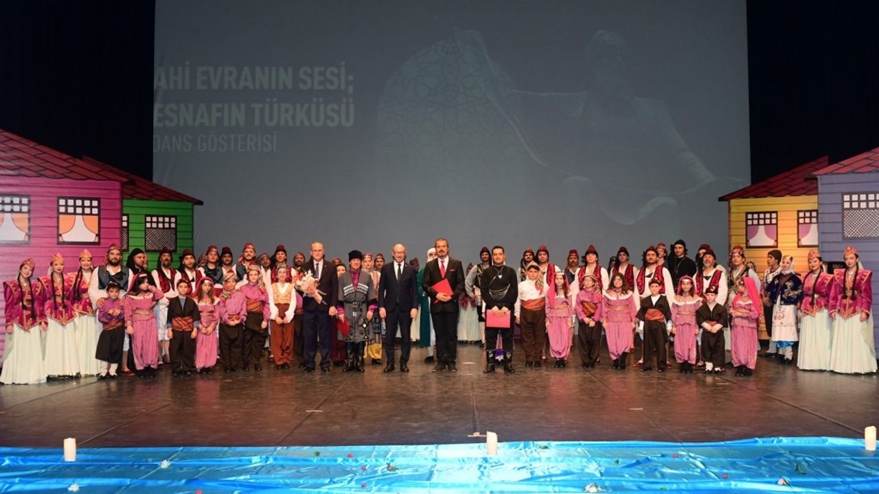 Anadolu Üniversitesi Halkbilim ve Araştırma Merkezi Halk Dansları Topluluğu tarafından gerçekleştirilen ‘Ahi Evran’ın Sesi: Esnafın Türküsü’ gösterisi Anadolu Üniversitesi Atatürk Kültür ve Sanat Merkezi Opera ve Bale Salonu’nda izleyicilerle buluştu. Gösteriye Anadolu Üniversitesi Rektörü Prof. Dr. Fuat Erdal başta olmak üzere birçok sanatsever katılım gösterdi.
