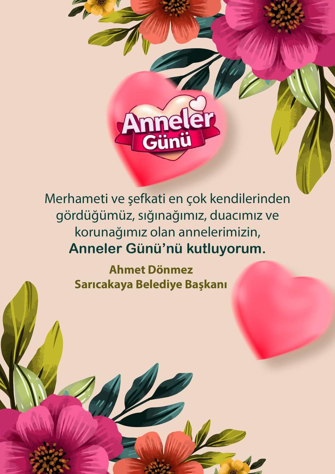 Sarıcakaya Belediye Başkanı Ahmet Dönmez Anneler günü kapsamında yayınladığı mesajında; "Merhameti ve şefkati en çok kendilerinden gördüğümüz, sığınağımız, duacımız ve korunağımız olan annelerimizin, Anneler Günü’nü kutluyorum" dedi.