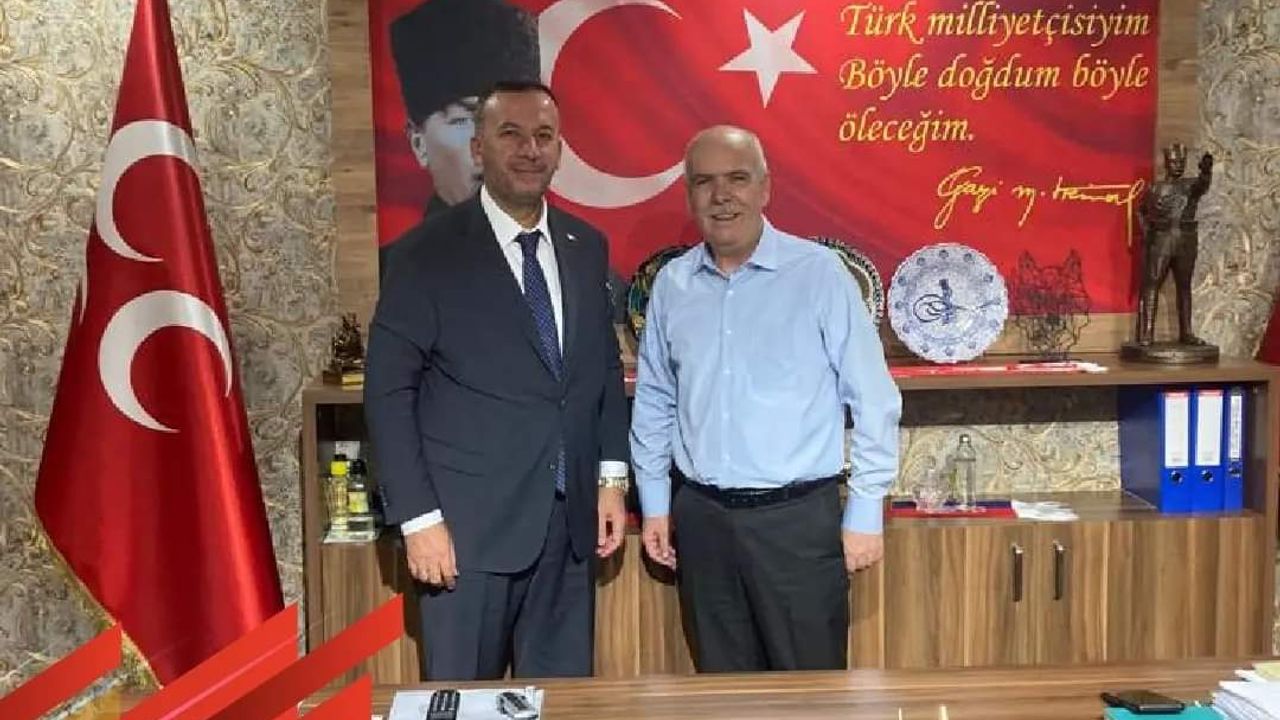 MHP Eskişehir il Başkanı İsmail Candemir Ahmet Sivri'ye nazik ziyaretinden dolayı teşekkür ederken,AK Parti Tepebaşı Belediye Başkan aday adayı Ahmet Sivri'de" Sayın Başkanımızla fikir teattisinde bulunmak ve değerli görüşlerini almak için ziyaret ettik dedi