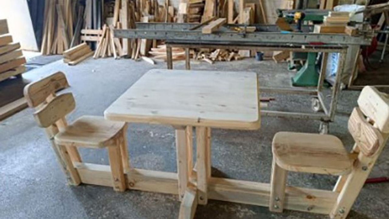 Bilecik’in Osmaneli ilçesinde ahşap atölyesinde çalışan görevliler bank, çardak ve masa üretimine devam ediyor.