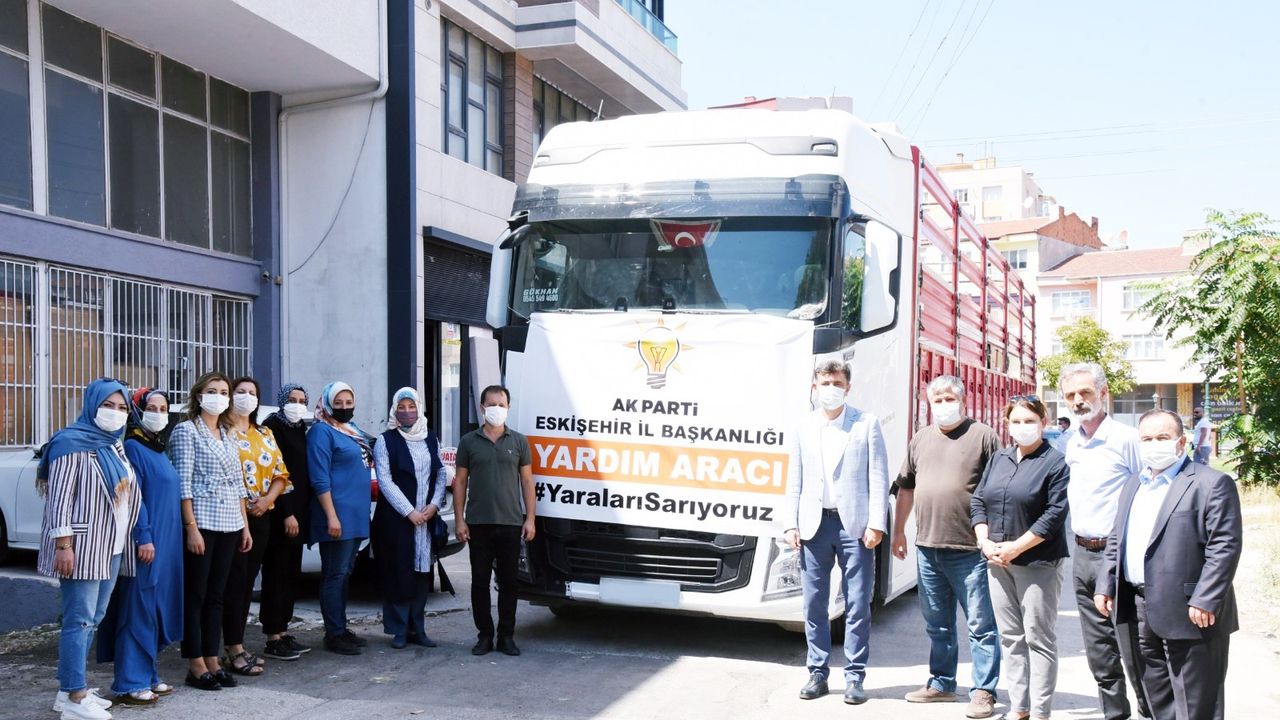 AK Parti Eskişehir İl Başkanlığı, Antalya ve çevresinde meydana gelen ve günler süren orman yangınlarından etkilenen vatandaşlar için yardım tırları hazırladı.