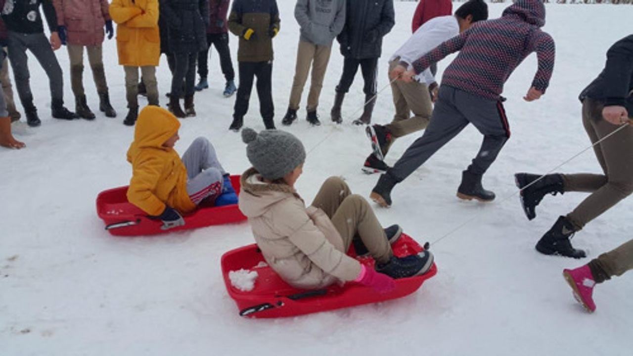 Öğrenciler, alınan kızaklarla, teneffüs ve serbest zamanlarda yağan karın mutluluğu hep birlikte yaşadılar. Han İlçe Milli Eğitim Müdür Vekili Ertaş: “Okul idarecileri ve öğretmenlerinin çocukların istekleri doğrultusunda bir araya gelerek kendi aralarında topladıkları paralarla aldığımız kızaklarla çocuklarımızın mutluluklarına ortak olduk” diye belirtti.