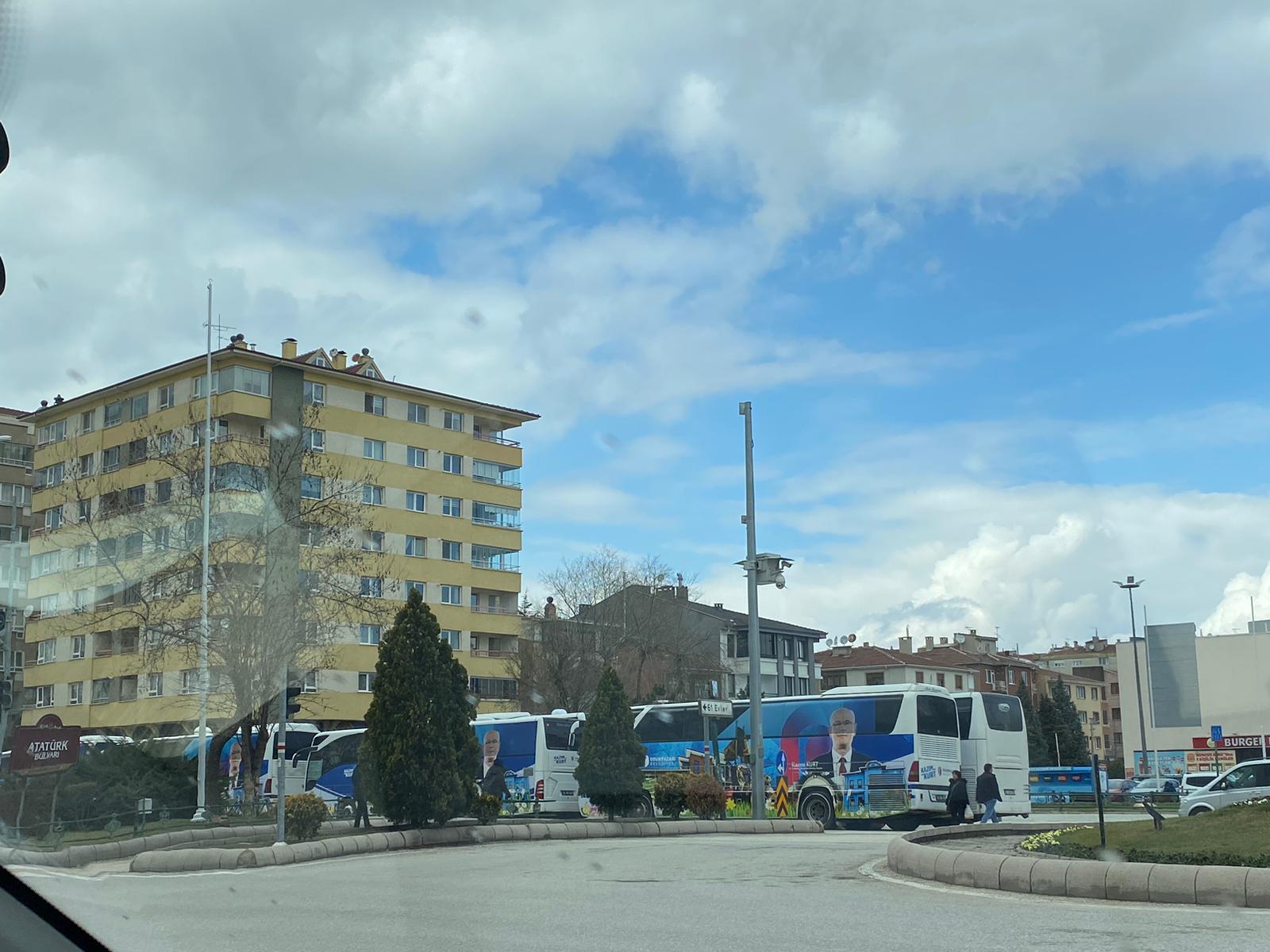 Bugün Öğle Saatlerinde Odunpazarı Belediyesi logolu ve Kazım Kurt'un Görselleri giydirilmiş, Atatürk Bulvarı üzerinde çift sıra halinde Park etmiş halde görülen 10 civarı Otobüs'un Cumhuriyet Halk Partilileri Ankara'ya taşıdığı iddiası üzerine AK Parti Odunpazarı ilçe Başkanı Ali Acar Konu hakkında acil cevap bekliyoruz açıklamasında bulundu
