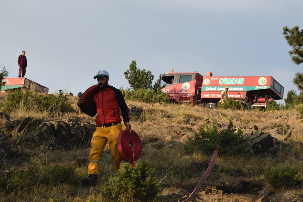 Civar illerden gelen destek ile orman yangınında 14 arazöz, 7 su tankeri, 3 itfaiye, 3 iş makinesi, 5 helikopter, 1 uçak ve 100’ün üzerinde personel görev aldı.