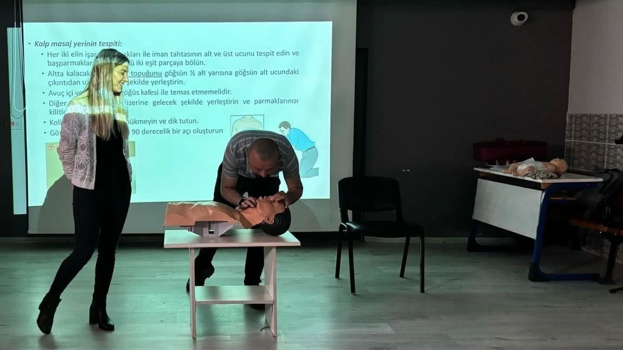 Eğitmen Uzman Hemşire Gülcan Okumuş tarafından İstanbul Ticaret Odası Şehit Süleyman Turan Anadolu Lisemizin konferans salonunda verilen ilk yardım kursuna, İlçe Milli Eğitim Müdürü İsmail Özden, Halk Eğitim Müdürü Salim Teoman Okuş ve Şube Müdürü Serdar Koyuncu katılım sağlayarak süreci yerinde incelediler.