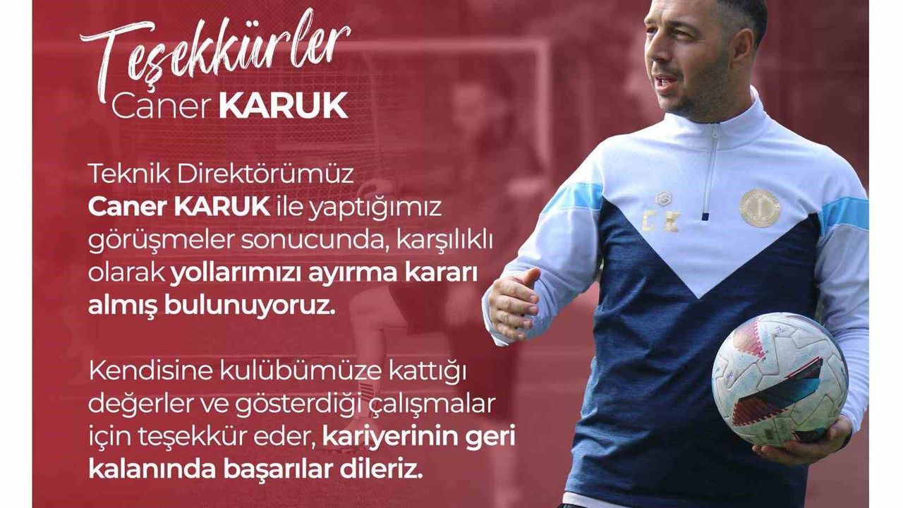 “Teknik Direktörümüz Caner Karuk ile yaptığımız görüşmeler sonucunda, karşılıklı olarak yollarımızı ayırma kararı almış bulunuyoruz. Kendisine kulübümüze kattığı değerler ve gösterdiği çalışmalar için teşekkür eder, kariyerinin geri kalanında başarılar dileriz.”