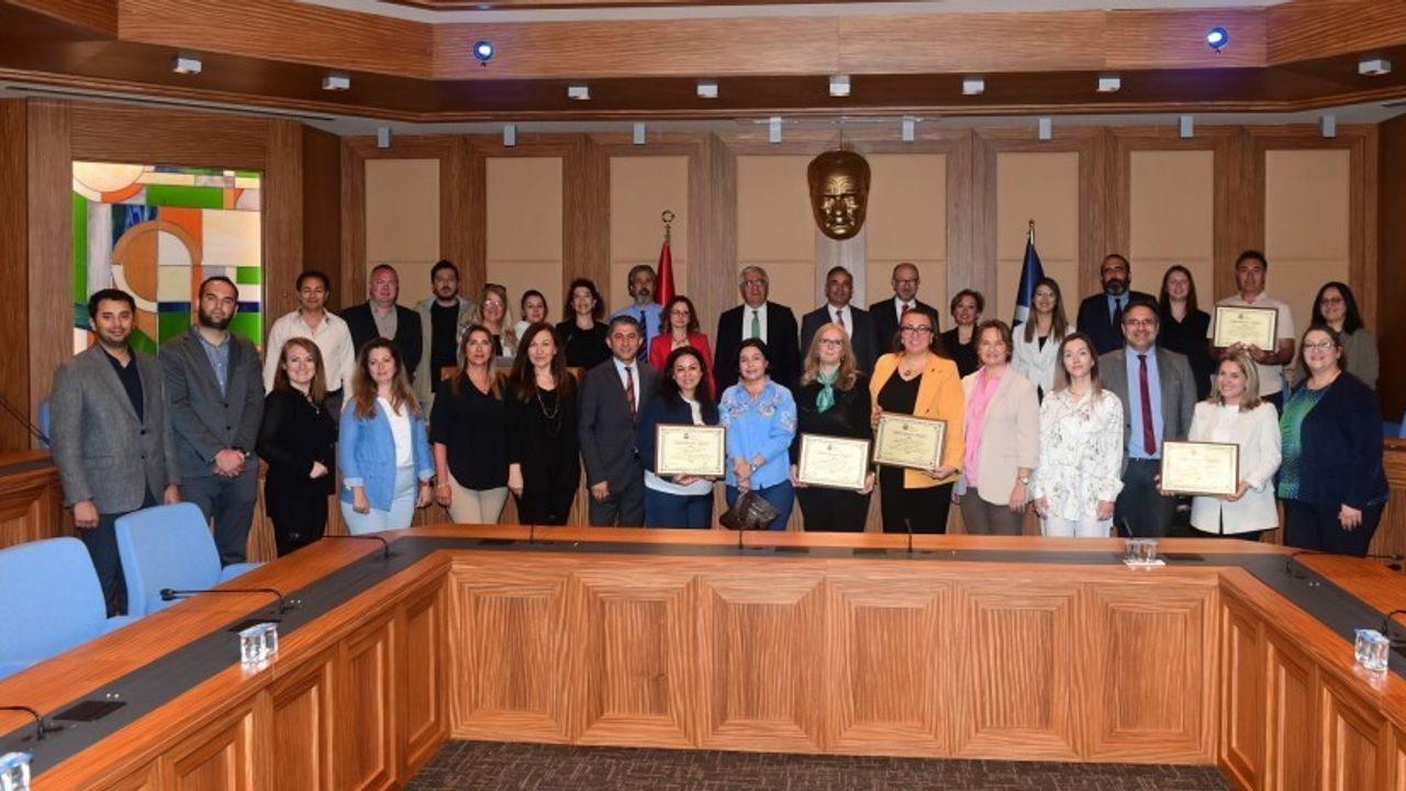 Törende Turizm Fakültesi Dekanı Prof. Dr. Semra Günay ve Gastronomi ve Mutfak Sanatları Bölüm Başkanı Prof. Dr. Hilmi Rafet Yüncü, Turizm İşletmeciliği Bölüm Başkanı Prof. Dr. Rıdvan Kozak ve Turizm Rehberliği Bölüm Başkanı Prof. Dr. Gökçe Yüksek, Eskişehir Meslek Yüksekokulu adına Yüksekokul Müdürü Prof. Dr. Salim Şengel ve Otel, Lokanta ve İkram Hizmetleri Bölüm Başkanı Prof. Dr. Dilek Acar akreditasyon belgelerini teslim aldılar.