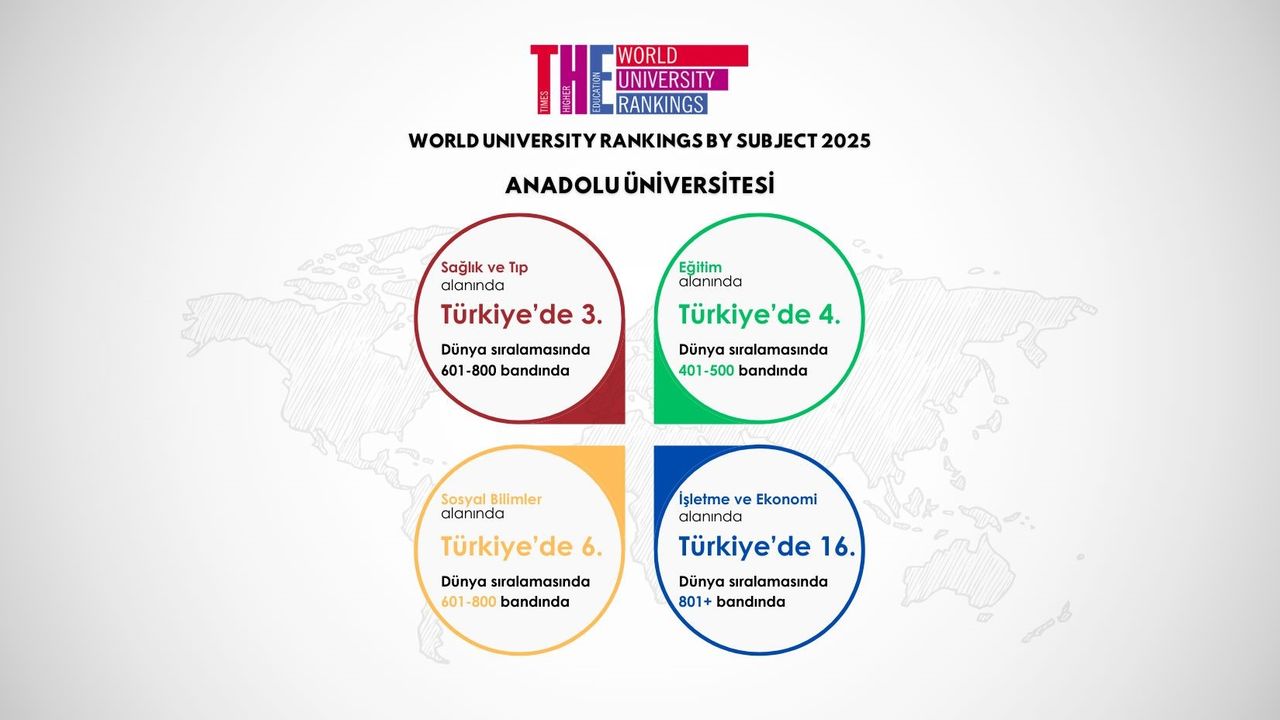 Dünyanın en bilinen uluslararası yükseköğretim derecelendirme kuruluşlarından biri olan Times Higher Education (THE) tarafından 2025 Dünya Üniversite Sıralamalarının ardından ‘Alan Bazlı Sıralamalar’ da açıklandı. Yayınlanan alan bazlı sıralamalara göre Anadolu Üniversitesi; Tıp ve Sağlık alanında Türkiye’de 3’ncü, dünyada 401 ila 500 bandında, Eğitim alanında Türkiye’de 4’ncü, dünyada 401 ila 500 bandında, Sosyal Bilimler alanında Türkiye’de 6’ncı, dünyada 601 ila 800 bandında, Ekonomi ve İşletme alanında ise Türkiye’de 16’ncı sırada kendine yer buldu.