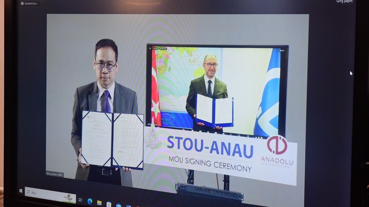 Çevrim içi olarak düzenlenen imza töreni Anadolu Üniversitesi Rektörü Prof. Dr. Fuat Erdal ve STOU Başkan Vekili Prof. Dr. Phanompatt Smitananda arasında gerçekleştirildi. Anadolu Üniversitesi Rektör Yardımcısı Prof. Dr. Ali Resül Usul, Uluslararası İlişkiler Birimi Müdürü Dr. Öğr. Üyesi Ertuğrul Gökçekuyu, Açıköğretim Fakültesi Dekan Yardımcısı Doç. Dr. Serpil Koçdar ile Eğitim, Öğrenim Desteği ve Araştırmadan Sorumlu Başkan Yardımcısı Vekili Doç. Dr. Narathip Sririam, Akademik Hizmetler, Kültürel Koruma ve Uluslararası İlişkilerden Sorumlu Başkan Yardımcısı Vekili Dr. Öğr. Üyesi Gan Chanyawudhiwan ve Uluslararası İlişkileri Birimi Müdür Vekili Rattip Phukkeson da imza töreninde yer aldı.