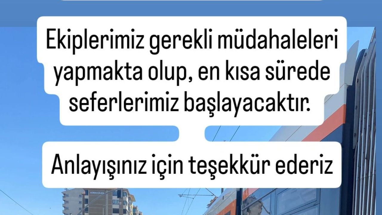 ESTRAM tarafından konuyla ilgili yapılan ilk açıklamada, "Borsa Kavşağı'nda oluşan karayolu araç kazası nedeniyle OTOGAR-SSK, OTOGAR-OGÜ hatlarında tramvay seferleri yapılamamaktadır. Ekiplerimiz gerekli müdahalelileri yapmakta olup, en kısa sürede seferlerimiz başlayacaktır. Anlayışınız için teşekkür ederiz" diye belirtilmişti.