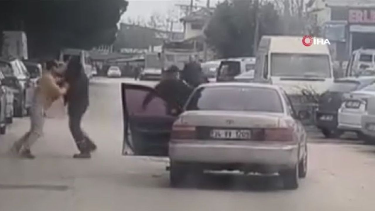 Bursa'da iki sürücünün yol ortasında yumruk yumruğa kavga ettiği anlar kameraya yansıdı. Taraflara toplam 360 bin lira ceza kesilirken, ehliyetlerine ve araçlarına 2 ay süreyle el konuldu