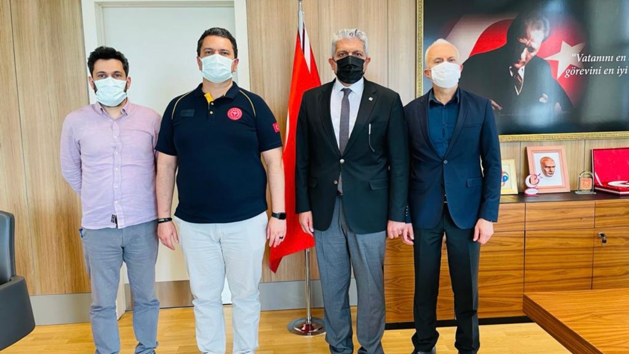 -İl Sağlık Müdürü Prof. Dr. Uğur Bilge ile birlikte Şehir Hastanesi Başhekimi Uzm. Dr. Yaşar Bildirici’yi ziyaret eden Eskişehir OSB Başkanı Nadir Küpeli, sağlık çalışanlarının pandemi sürecinin baş kahramanları olduğunu ifade ederek, “Pandemi sürecinin kahramanları insanlarımızın sağlığı için gecesini gündüzüne katan sağlık çalışanları oldu. Ne yaparsak yapalım onlara hakkımızı ödeyemeyiz. Sağlık çalışanlarına minnet borçluyuz. Şimdi de aşılama sürecinde çok etkin bir rol alıyorlar” dedi.Eskişehir Organize Sanayi Bölgesi (EOSB) Yönetim Kurulu Başkanı Nadir Küpeli, Eskişehir İl Sağlık Müdürü Prof. Dr. Uğur Bilge ile birlikte Şehir Hastanesi Başhekimi Uzm. Dr. Yaşar Bildirici’yi ziyaret etti. Gerçekleşen ziyarette Başhekim Yardımcısı Op. Dr. Serkan Ceyhan da yer aldı.